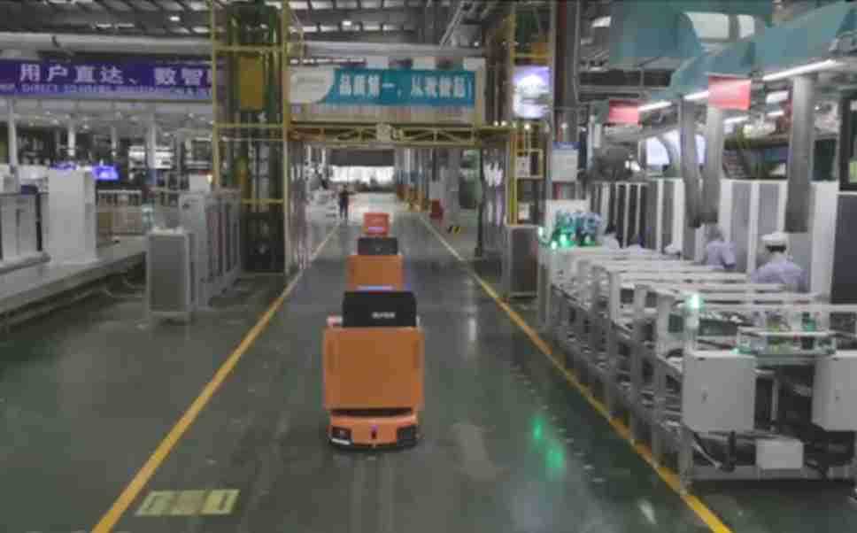为车载冰箱物流配送打造的智能解决方案,,包含产中物流通过潜伏举升AMR搬运至线边,,,产后成品物流智能仓储,,,流程包含产中物流智能齐套入库,,,线边安灯叫料AMR智能配送至线边,,,成品入库、、出库,,,通过无人堆高车机器人,,,智能仓储管理替代人工作业管理,,实现更高存储、、、、更高效率、、更具柔性化的解决方案。。。